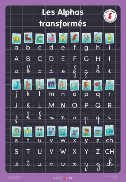 Le grand poster des Alphas transformés est spécialement conçu pour un affichage en classe. Grâce à son grand format 70 × 100 cm, il reste parfaitement visible par tous les élèves.