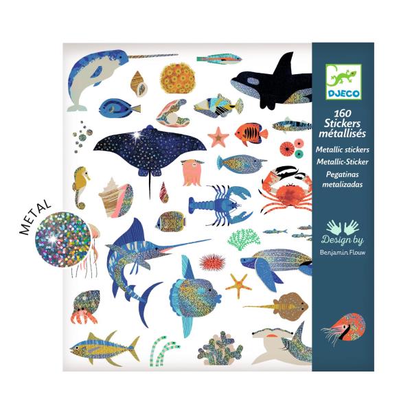 Une pochette de 160 stickers métallisées sur le thème de l’océan. Espadon, bernard-l’hermite, poisson-lune, hippocampe… Autant d’animaux variés et brillants de la faune sous-marine à découvrir ! L’enfant colle les nombreux stickers librement pour composer ses propres saynètes ou décorer ce qu’il souhaite.