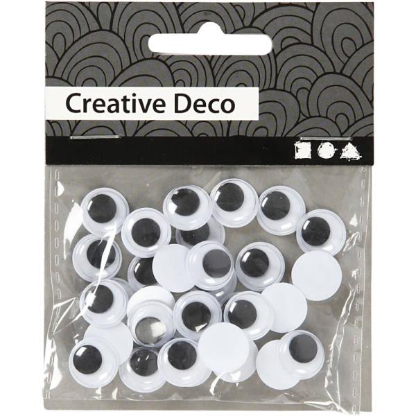 Les pupilles mobiles créent un effet dynamique qui rend les réalisations encore plus originales. Comme ces yeux ne sont pas autocollants, ils doivent être fixés avec de la colle, ce qui permet de les utiliser facilement sur de nombreux matériaux.