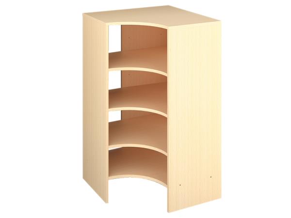 Inbouwhoekkast X in beuken afwerking, ideaal om hoeken optimaal te benutten.