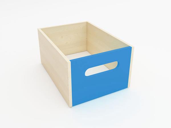 Bac en bois profond offrant une capacité adaptée au rangement de différents accessoires et fournitures.