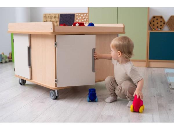 Treasure Island de la collection Optima est une table de jeu fonctionnelle avec espace de rangement intégré. De chaque côté, le meuble dispose d'une niche pouvant être équipée de portes, étagères ou bacs en plastique, vendus séparément, pour une organisation efficace de l'espace.