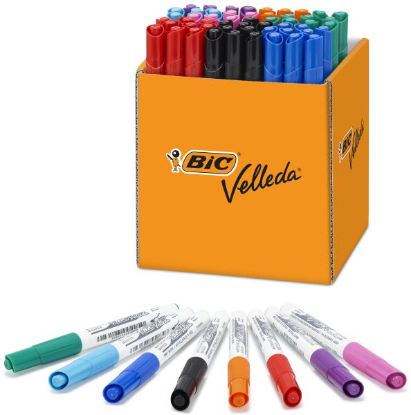 Classpack de 60 pièces de marqueurs BIC Velleda, spécialement conçus pour ardoises et tableaux blancs. Grâce à leur pointe ogive medium, ces marqueurs offrent une écriture fluide et une grande durabilité, parfaits pour une utilisation intensive en classe. Leur effaçabilité rapide à sec permet de nettoyer les tableaux sans laisser de trace, assurant une utilisation prolongée sans difficulté.