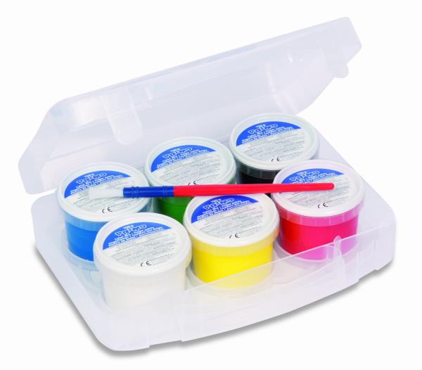 Créez des œuvres d'art vibrantes et éclatantes avec cette gouache au doigt de qualité supérieure ! L'étui de 6 pots assortis de 250 gr chacun vous offre une palette de couleurs riche et variée pour libérer votre créativité sans limites.