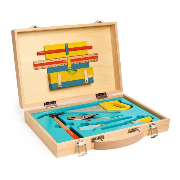 Pour les apprentis bricoleurs dès 7 ans, cette superbe mallette en bois renferme de véritables outils parfaitement adaptés aux enfants. Ici, pas de jeu d’imitation : on peut vraiment scier, visser, marteler et mesurer, tout en restant dans un cadre sécurisé. Chaque outil est conçu pour être solide, maniable et efficace, afin de développer dextérité, précision et créativité. Une mallette complète et robuste, idéale pour apprendre à réparer, construire et inventer, comme un vrai pro du bricolage !