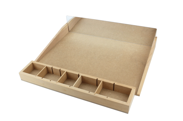 Sans barrières gênantes, il offre une surface de travail libre et ergonomique. Le bord arrière surélevé permet de réaliser des exercices de tri selon des critères personnalisés, tout en garantissant un transport sécurisé vers la table ou l’étagère sans que les éléments ne tombent.