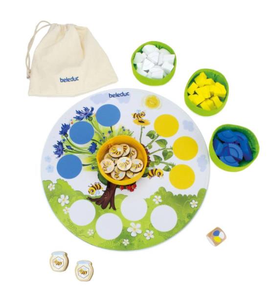En jouant, ils découvrent le rôle essentiel des abeilles dans notre écosystème : en transportant le pollen de fleur en fleur, elles permettent la pollinisation et la reproduction des plantes. Un jeu qui allie apprentissage, manipulation et sensibilisation à la nature.