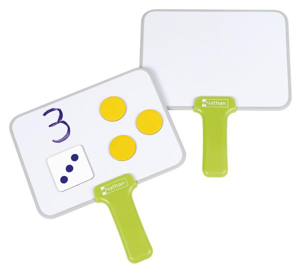 Ardoises à manche pour des activités de classe : écrire et/ou poser des éléments magnétiques. À utiliser avec des feutres effaçables ou des magnets vendus séparément.